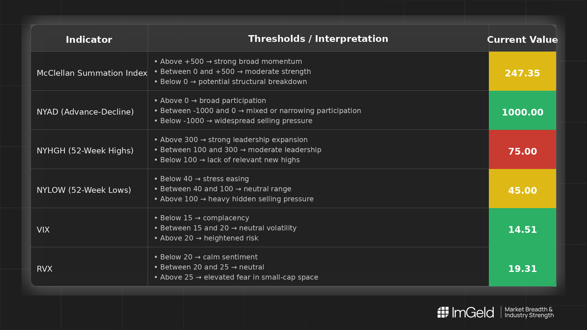 Market breadth is only the starting point. Thinking of going long or short without knowing which industries are accelerating or breaking down? Each industry moves in its own rhythm. Stay informed. Unlock the ImGeld Industry Updates — subscribers only.
