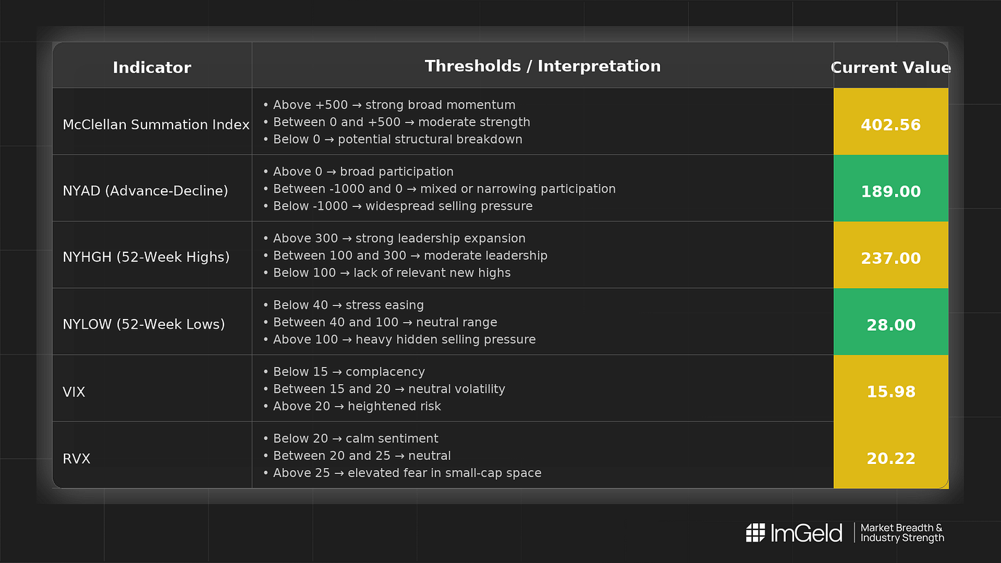 Market breadth is only the starting point. Thinking of going long or short without knowing which industries are accelerating or breaking down? Each industry moves in its own rhythm. Stay informed. Unlock the ImGeld Industry Updates — subscribers only.