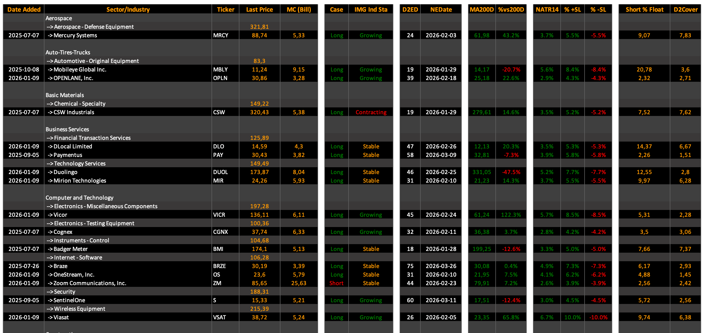 Stocks selected for long and short positioning, where fundamentals justify directional conviction, not just technical noise.